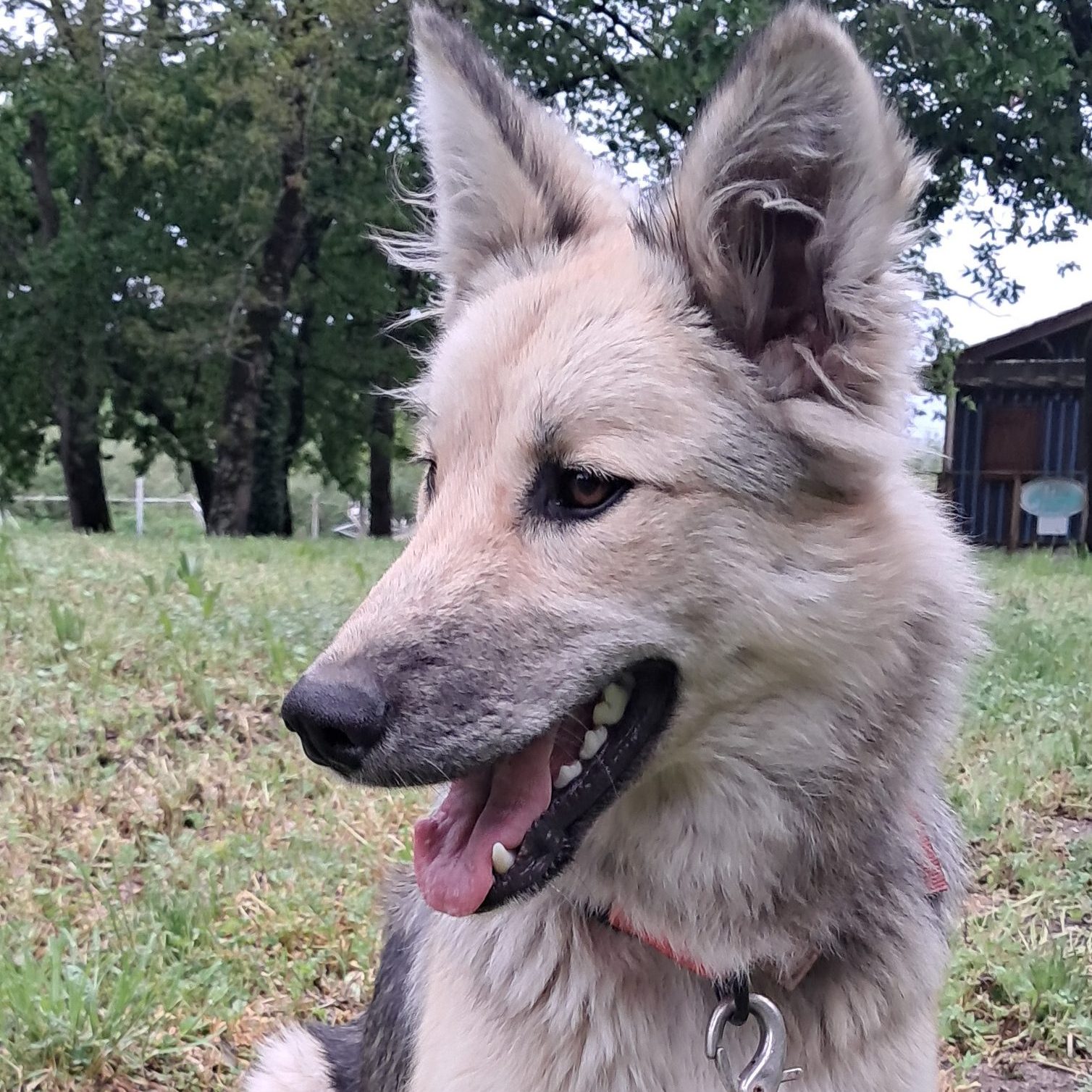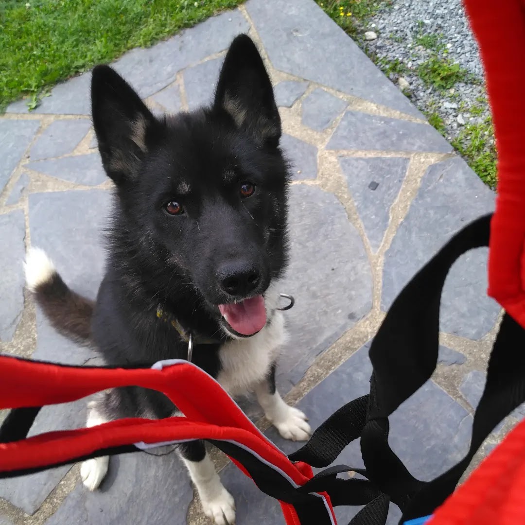 Le doyen de la meute, mais surement le plus joueur avec l’Homme. Il adore rapporter la balle. Au travail, il est placé a coté de son fils en wheeldog. Il a commencé un trouble neuronale intraitable en décembre 2024. En retraite anticipée, il continue de nous accompagné sur les entrainements courts.